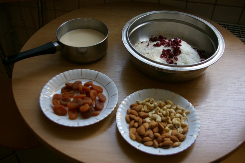• 120g ulubionych bakalii (np. suszone morele, śliwki, figi, co kto lubi)