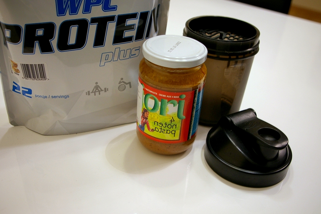 Na około 1,5 godziny przed snem spożywam ostatni, białkowo – tłusczowy posiłek. Najczęściej jest to białko (izolat) oraz ulubione masło orzechowe. Najczęściej wybieram Primavikę bez soli i cukru ale czasami eksperymentuję również z masłem migdałowym lub mixami z czterech orzechów (na zdjęciu masło Jori marki Horizon)