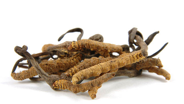 Cordyceps (a genus of ascomycete fungi) in isolated white background