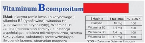 W opisie B-compositum możemy często natrafić na opis: kompleksowy zestaw witamin z grupy B, co jest wprowadzaniem klienta w błąd, gdyż takowy suplement nie zawiera wszystkich 8 witamin w swoim składzie!