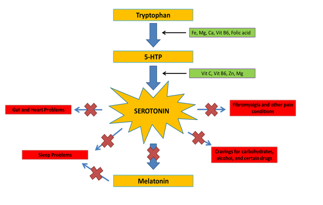 Wszystko zaczyna się od niezbędnego aminokwasu o nazwie tryptofan, który zamienia się w 5-hydroksy-L-tryptofan. Następnie 5-HTP przekształcane jest w mózgu w serotoninę, a ta zostaje przekształcona w melatoninę. Zauważmy, że w czasie tych etapów potrzebujemy wielu witamin i minerałów, w tym m.in.: żelazo, magnez, wapń, witaminę B6, kwas foliowy, witaminę C, cynk.