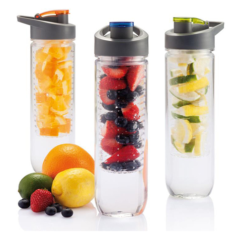 Idąc tematem bidonów możesz zakupić taki, do którego włożysz plasterki świeżych owoców cytrusowych i nadasz niepowtarzalny aromat wodzie. Wystarczy dokładnie oczyścić owoce, pokroić, zalać wodą i tyle! W pracy możesz zrobić to samo dokładając do szklanki świeże dodatki. Czym warto urozmaicić smak wody?