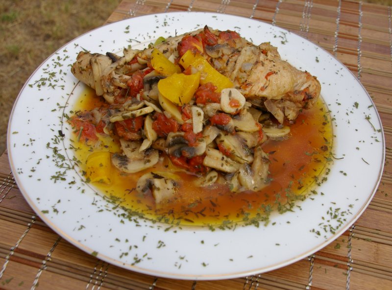Dziś po raz pierwszy na blogu udka z kurczaka. Danie bogate w warzywa, duszone razem…